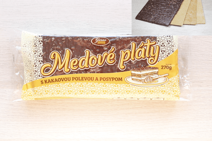 Medové pláty s kakaovou polevou a posypom. Polotovar na výrobu zákuskov. Cukrársky korpus . Jemné pečivo